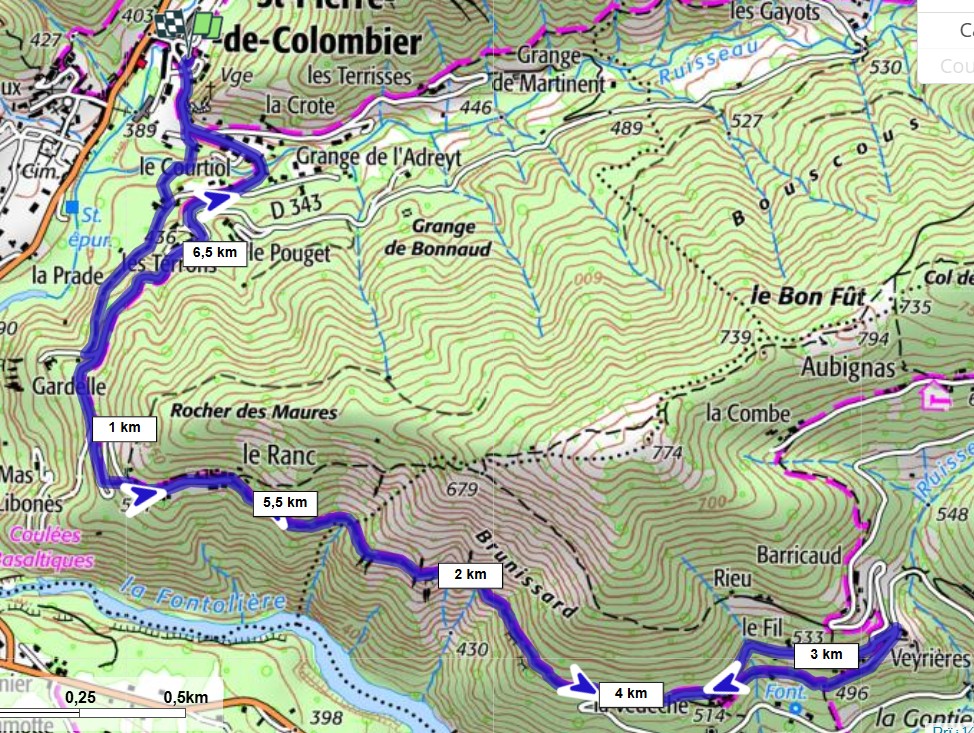 Balades Jeudi 13 novembre 2025 Balade Saint Pierre de Colombier – Le Ranc – Veyriére Distance: 7,1 km Dénivelé positif: 208 m Départ : Place du marché Teléchargement parcours
