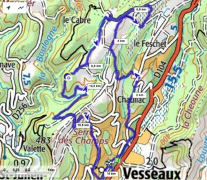 Vesseaux – entre Lioure et Boulogne 13,-km Dénivelé=:448m