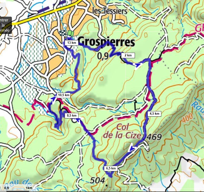 Grospierres – Col de la Suze – Font Vive 12,9km Dénivelé+ : 448m